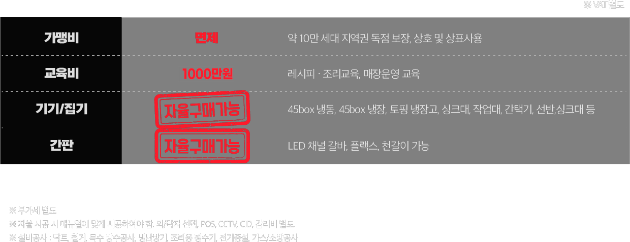 ※원재료 수급상황 및 매장 운영방식에 따라 상이